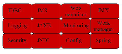 WebLogic Event Server是一个功能全面的应用服务器,它为事件驱动型应用程序提供了一整套必备的服务。图3显示了Event Server所提供的一些比较重要的服务模块(或程序包)。比如说,Event Server支持通过JDBC访问关系数据库。Event Server可充当JMS客户机的角色。身份验证和授权服务可用于指定一组允许执行管理操作的用户。Event Server还支持工作管理人员处理与线程有关的事项。
