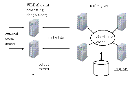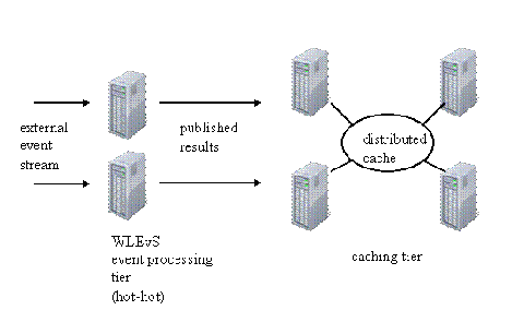 WebLogic Event Server可以很容易与第三方分布式缓存解决方案集成在一起,从而提供分布式缓存的各种优点,比如说高可用性。在图5的示例架构中,分布式缓存结合Event Server为Event Server应用程序的计算结果提供了高可用性。