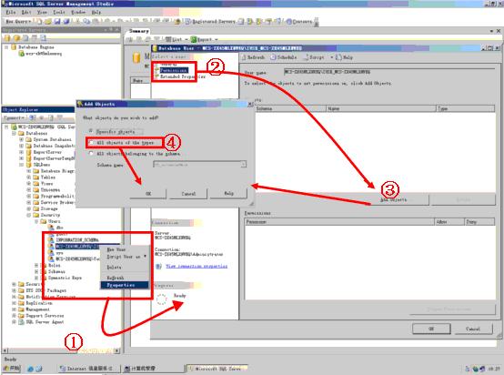 第二步:除了要设置Reporting Services的IIS站点能允许IUSR_**(匿名用户)访问外,首先需要设置SQL Server 2005 中相应的数据库能允许IUSR_**(匿名用户)有只读的访问权限。