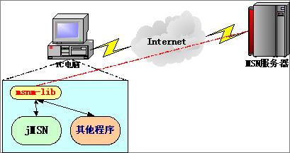 下图是msnm-lib与jMSN包括MSN系统之间的关系,也就是说我们可以通过msnm-lib来完成与MSN服务器之间的通讯而不需要我们去操心具体的通讯协议的细节。事实上msnm-lib给我们做了更多的事情使得我们使用msnm-lib来开发一个MSN应用程序变得非常的简单,这也就是我前面提到的我们完全可以不去可能它所提供的韩文API文档的缘故,因为使用它实在是太简单了。