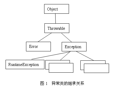 3. "异常机制"中还有一种特殊情况――RuntimeException"异常类"(见图1),这个"异常类"和它的所有子类都有一个特性,就是"异常"对象一产生就被Java虚拟机直接处理掉,即在方法中出现throw 子句的地方便被虚拟机捕捉了。因此凡是抛出这种"运行时异常"的方法在被引用时,不需要有try…catch语句来处理"异常"。