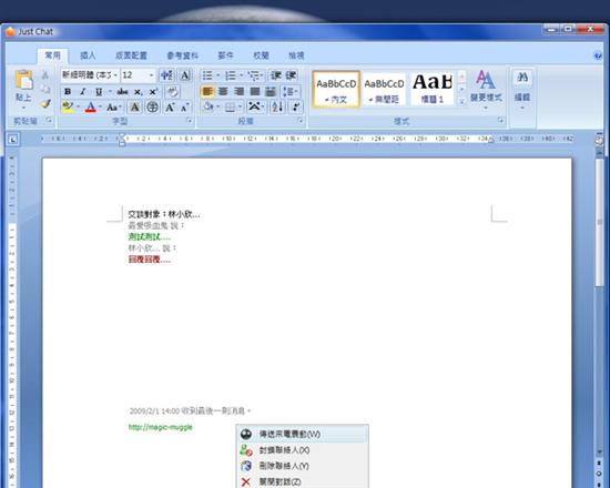 据介绍,Just Chat的原理十分简单,只是把MSN嵌入外观像Word、execl这些文书编辑等办公