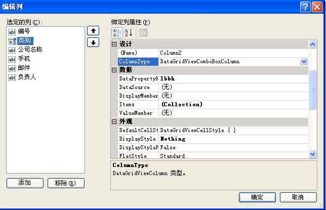 现在设置一下DataGridView中显示客户类别的列的显示方式: