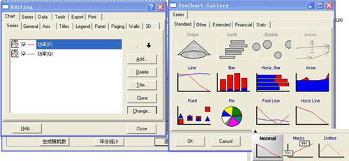 首先启动VC建立一个基于对话框程序的工程(如果建立SDI工程也可以,不过要对控件进行动态创建等工作实在太麻烦了),然后Insert ActiveX Controls->选择TeeChart控件加入到工程中间.然后通过classWizard定义控件变量.这时编译器会自动加载一系列的控件相关的类到程序中间来.