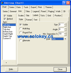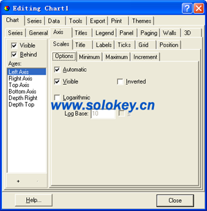 Left Axis,Right Axis,Top Axis,Bottom Axis,Depth Right,Depth Top:和名字的说法一样,都是TeeChart默认创建的Axis,也可以根据需要自行定义Axis.