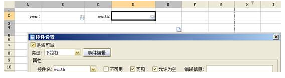 设置参数month的控件类型为下拉框,使用公式编辑,输入公式:range(1,12)