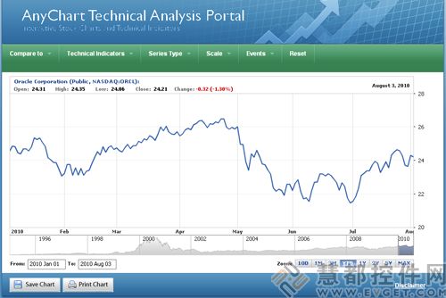 AnyStock全名为AnyChart Stock and Financial Flash Chart,是一个良好的基于XML/JSON的Flash金融图表解决方案。它可以将你的实时数据转换为具有交互功能的顶级图表,使你的数据直观地展现在Web页面上。