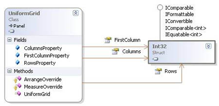 在清楚了上面这张图以后,我们就可以着手开始写了,我们知道布局系统的工作原理是先测量后排列,测量就是确定面板需要多大空间,排列则是定义其面板内子元素的排列规则。自定义面板要继承自Panel类并重写MeasureOverride和rrangeOverride方法即可,如下便是一个简单的自定义Panel: