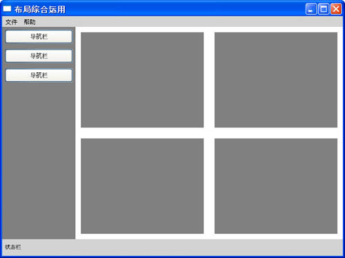 前面通过十多个小节讲了一些常用Panel的基本用法,那我们这里就简单做一个综合的小例子,通过这个例子,旨在巩固前面的内容,也可以当做一个举一反三的过程。要实现的效果如下图: