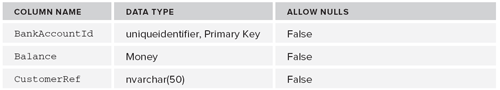 下面就开始创建保存数据的数据库,和以前一样,为了演示的作用,我们在Web project中添加一个名为BankAccount.mdf的数据库,并且建立如下的表: