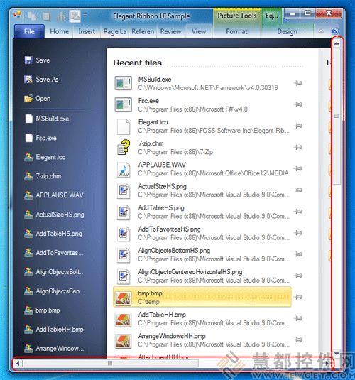 目前,Elegant Ribbon 控件已经正式发布v3.8,新版本提供了许多新特征,例如,导航栏, 面板 和BackstageView 控件现支持滚动功能,新增三个Office 2010主题和多款新控件,改进导航功能等等,更能够满足用户的要求。