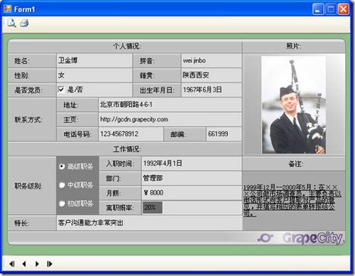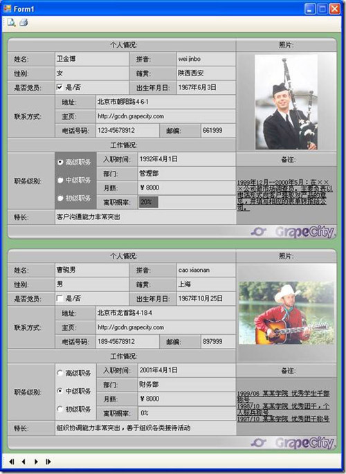 MultiRow也提供了打印功能,以及各种打印模式和设置,下面是使用SingleRow打印模式,保证每页只打印一条记录,打印预览效果如下所示: