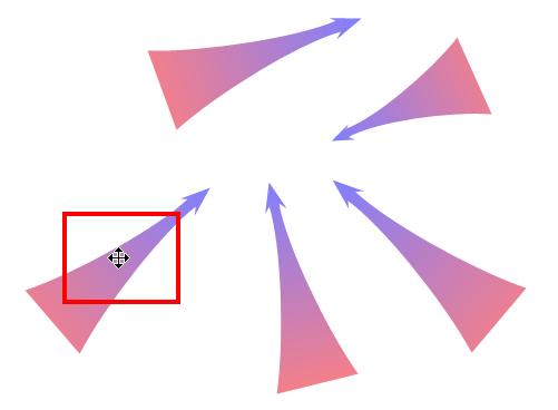 当工具状态处于“移动标绘”状态时,鼠标在地图空间点击标绘箭头,则标绘箭头处于移动选中状态(如下图“移动标绘”中的鼠标样式),拖动鼠标,则标绘箭头会跟随鼠标移动,把标绘箭头移动到指定位置后,点击地图空间,则当前选中的标绘箭头的移动结束。