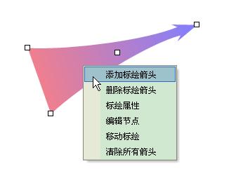 曲线:箭头尾部为曲线,“编辑节点”时,尾部显示三个可控制点;