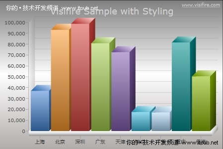 Visifire 是一个基于SilverLight的Chart组件,VISIFire 公司提供了 Open Source 的 Silverlight Chart 组件,遵循GPL v3,可以在 ASP, ASP.Net, PHP, JSP, CodeFusion, Ruby on Rails 以及 HTML 中使用。支持的Chart类型挺多的(支持饼图,柱状图,圈图,区图等等)。