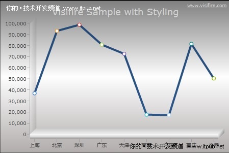 效果图就贴这些吧,这些只是比较常用的一部分而已,当然如果觉得样式不好,可以更改的,只是可惜的是Visifire现在已经收费了,不过毕竟曾经Open Source过。这个版本还是可以正常使用的,但是右上角的水印去不掉的,Watermark属性提示已经过期了,不过喜欢的朋友们仍然可以使用好了,水印只不过是一个链接而已嘛。