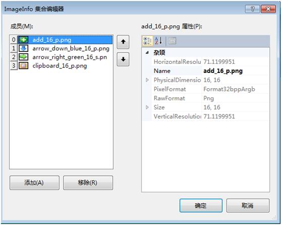 从工具箱内拖住ImageCollection控件到Form上,类似于DefaultLookAndFeel,在Form下方出现新增控件,右键点击此控件,选中Add Image,可从本地获取相关图标,我在这里新增了四个小图标,如下图所示: