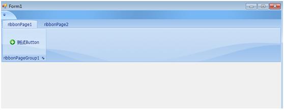 从左边的工具箱中拖一个 RibbonControl组件放置到Form上,RibbonControl自动停靠到Form靠上的位置,如下图所示: