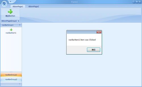右键点击navBarGroup1,可选择新增/删除Group,或者新增Item,这里我新建一个Group和一个Item。如果想删除Item或者对 某Group中的Item进行排序,就需要点击右上角的三角符号进入Designer了,具体的操作方法与RibbonControl大同小异,不再繁 叙。效果图如下: