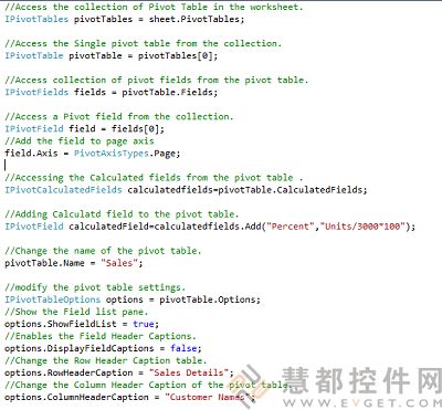 现在,您可以加载和操纵现有的Excel文件,如Essential XlsIO中的基本透视表。通过简单的API值,可以插入不同类型的小计,以及添加计算字段。Essential XlsIO可支持Excel 2007中85种不同的内置样式,使你仅需一行代码便可创建出丰富的表格。