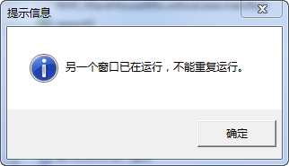 MessageUtil.ShowTips("另一个窗口已在运行,不能重复运行。");