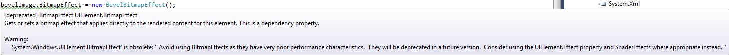 概述:最近项目有个需求,需要显示出图片Image的“SUNKEN”效果,就是可以将图片变成各种凹凸的形状,可能有些园友也做过类似的需求。在WPF 3.5(及之前)版本中,这个效果很简单就可以实现,直接应用BevelBitmapEffect就可以实现这样的效果。
