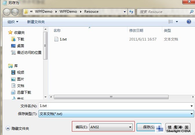 结果居然让我失望,果然还是乱码,这究竟是怎么回事啊?思量了好久,没找到原因,网络上的方法也几乎没效果,找啊找,就在自己觉得绝望的时候,突然一个念头闪过:也许不是代码问题,可是,不是代码问题,莫非是文本文档的格式问题?打开文本文档,选择另存为,果然,问题一目了然了: