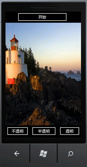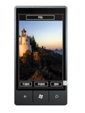 <Button Content="半透明" Grid.Row="2" Height="72" HorizontalAlignment="Right" Margin="0,0,151,0" Name="button3" VerticalAlignment="Top"