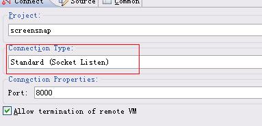 1.5以前版本(1.5以后也可用):【-Xdebug -Xrunjdwp:transport=dt_socket,server=y,address=8000 】