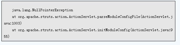 一般出现这种异常在后面会显示一个关于ActionServlet的异常堆栈信息,其中指出了异常具体出现在代码的哪一行。我曾经遇到的一次提示如下: