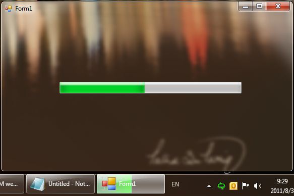 下面是我用这些类库实现的一个效果,包含了窗体透明玻璃磨砂效果以及任务栏进度条显示。