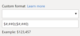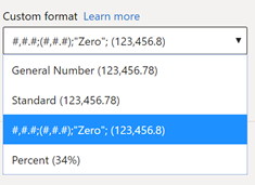 或者您可以使用给定的输入框输入自己的格式字符串。Power BI将支持大多数VBA样式语法,但有一些例外。