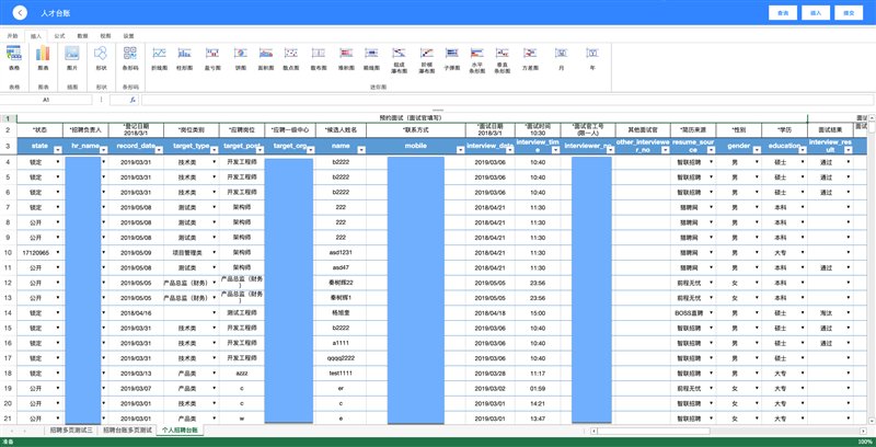 这是我们使用SpreadJS纯前端表格控件开发的“人才台账”项目应用截图,SpreadJS已经帮我们实现了微软Office Excel 90%以上的功能,我们只需增加一些UI样式和下拉框,就可以迅速交付一套完整的基于Web的 Excel功能模块,对于提升项目研发效率、较低后期维护成本来说,SpreadJS均可提供巨大帮助。