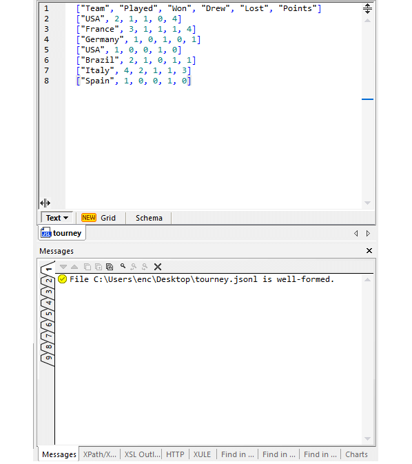 XMLSpy JSON编辑器现在支持JSON行(JSONL)和JSON带注释(JSONC)文档,用于编辑和验证。