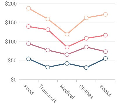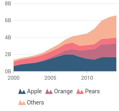 堆积折线图类似于折线图,只不过数据点被堆叠在彼此的顶部。以下代码说明了如何渲染堆积折线图: