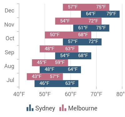 范围柱形图就像是一个柱形图,但条将从指定的最小值开始,而不是0。下面的代码说明了如何渲染范围柱形图: