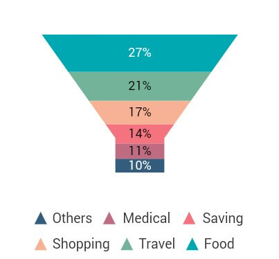 金字塔图在视觉上代表金字塔状结构的层次结构,它显示了总价值的比例。下面的代码演示了如何呈现金字塔图: