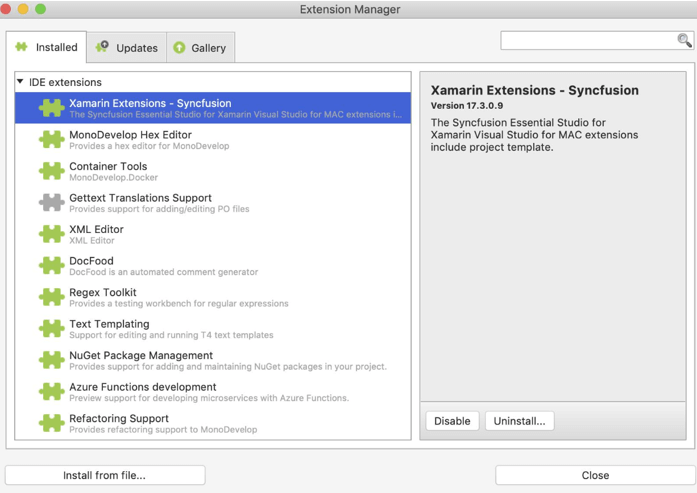 默认位置:{Documents}\{User}\{version}\Xamarin\Extension\Syncfusion Xamarin VS Mac Extensions.mpack