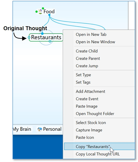 右键单击要复制的思想,然后单击上下文菜单上的“name of Thought”命令。