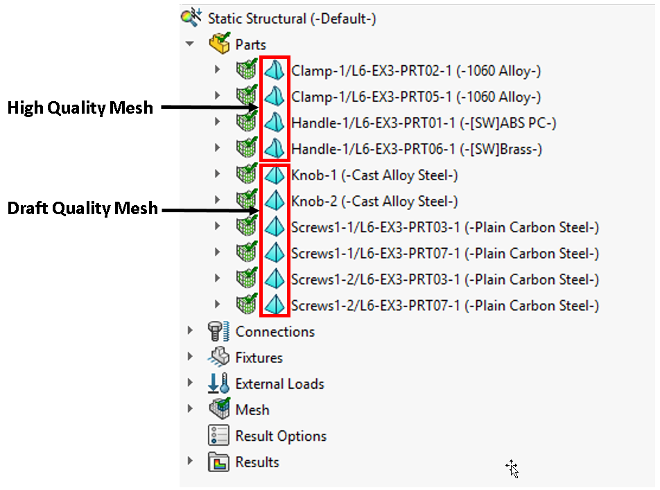 此增强功能的灵活性使您可以选择要网格划分的实体:高质量或拔模质量。草图质量网格物体的求解时间更快,而高质量的网格物体在需要时可以提供更高的精度。这样做的好处是您可以更快地验证设计,并且仍然可以捕获关键组件的准确结果。