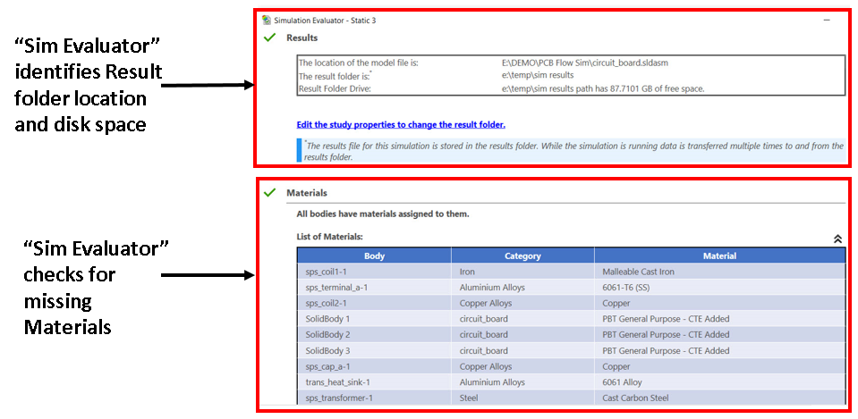 如果您因模拟研究设置不正确而使模拟失败而感到沮丧,请查看Simulation Evaluator。它检查与结果文件夹,结果驱动器的存储容量,模拟中使用的材料以及网格体积有关的条件。