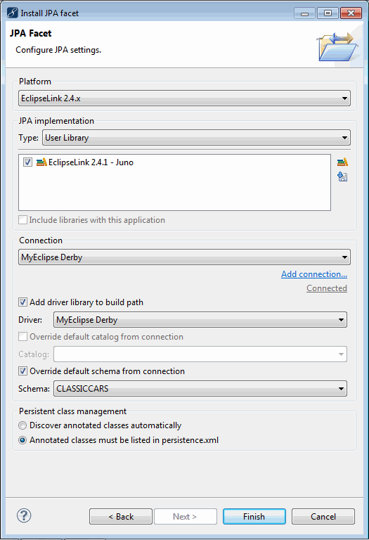 MyEclipse为OpenJPA、Hibernate和EclipseLink JPA提供程序提供支持。