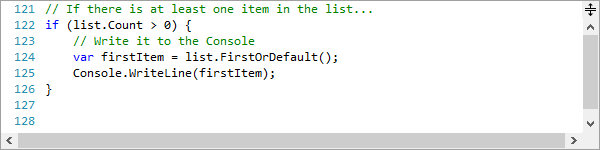 添加了新的行号提供程序语言服务,该服务允许完全自定义如何在行号空白中呈现行号。另外,在文档中添加了一个属性,用于设置文档第一行的行号,默认为1。