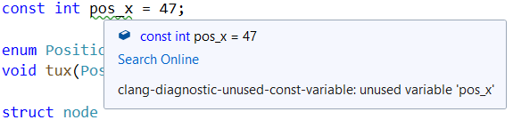 现在,无论使用的是Clang还是MSVC工具集,C ++ Code Analysis本身都支持MSBuild和CMake项目的Clang-Tidy。Clang-tidy集成可以作为后台代码分析的一部分运行,显示为编辑器内的警告(弯弯曲曲的),并显示在错误列表中。
