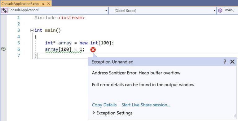现在,您可以为使用MSVC编译器工具集编译的Windows C ++项目启用Address Sanitizer(ASAN)。ASAN是一种快速的内存错误检测器,可以发现运行时内存问题,例如“用后使用”并执行越界检查。该支持仍处于试验阶段。