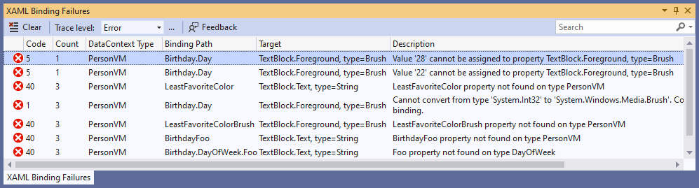 此功能意味着开发人员将不再需要使用输出窗口来检测绑定失败,并且可以更轻易地发现它们。