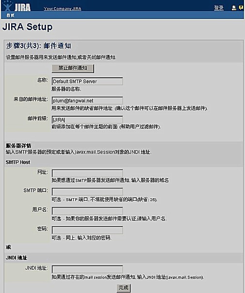 安装好之后就首先要在服务器上通过//localhost:8080为服务进行配置(8080是 Jira的端口),具体需要经过三个步骤完成: