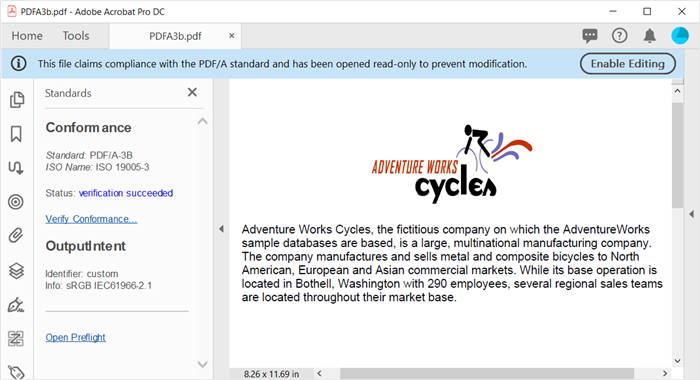 创建符合PDF/A-3b标准的文档。