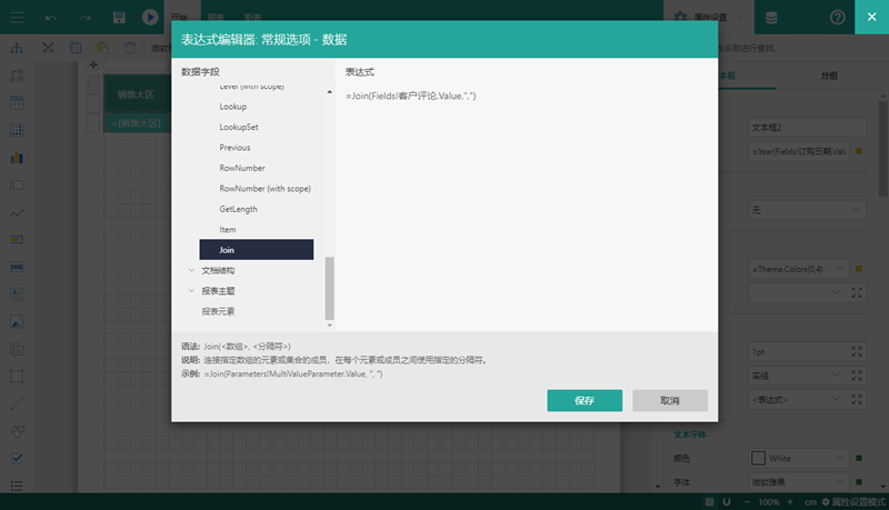 新增文本和日期相关的函数15个,借助这些函数可以满足更多的数据计算需要。同时,现在可以直接在表格和图表等位置直接通过鼠标右键打开表达式编辑器,可以更便捷的进入表达式编写对话框,不用在设计界面和属性窗格之间来回切换。