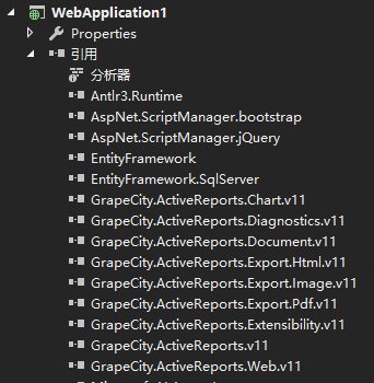 添加完ActiveReports Web服务以后, ActiveReports会帮我们自动将ActiveReports所需要的dll引入到我们的工程中,如下: